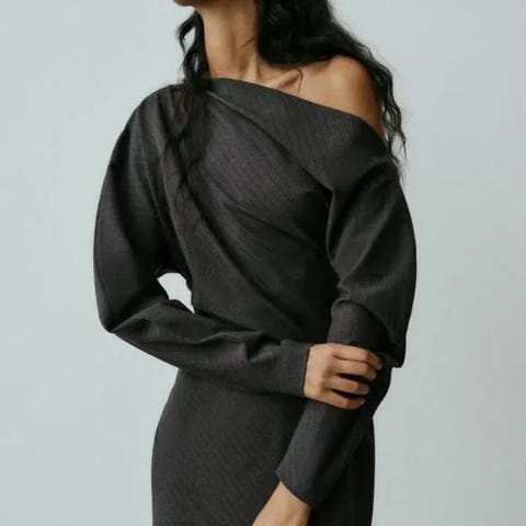 Zara kjole i størrelse S, laget av fløyel i svart farge. Kjolen har transparente ermer med prikkemønster. Åpen rygg.