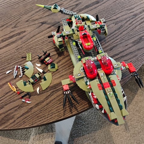 Ferdigbygget lego må hentes. Eske og byggemanual følger ikke med.