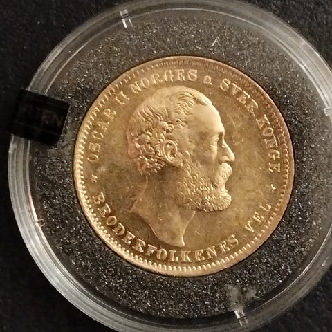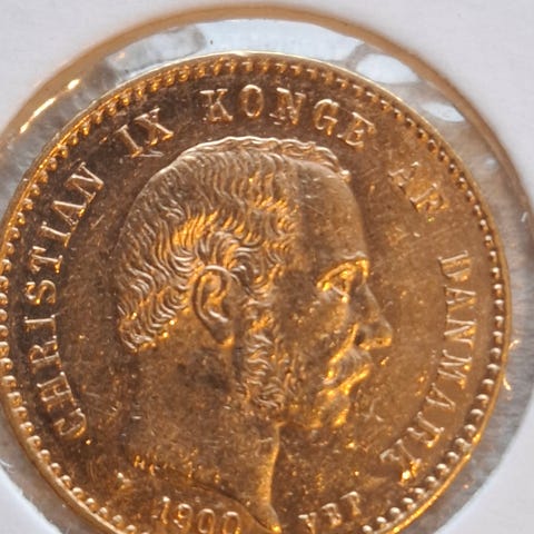 Gull 5kr fra Sverige og 10kr fra Danmark, selges eller kan byttes mot tilsvarende valør i gull (annet årstall) pris 5kr 4650,- pr stk, 10kr 8500,-
