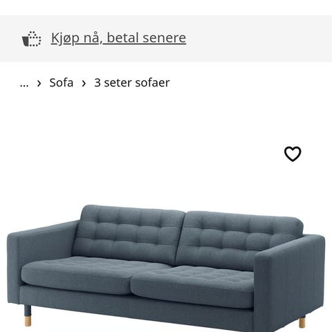 Pent brukt 3-seters sofa fra IKEA selges. Kivik i grå . (Denne farger kan ikke kjøpe på butikken nå). Brukt i stue i noen år. Sofaen er i god stand. Ryggputene har sunket litt, men kan byttes eller suppleres.