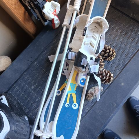 Ski og staver for de aller yngste barna (fra 2-5 år). Skiene er brede og stabile, og har mønster under som begrenser farten.