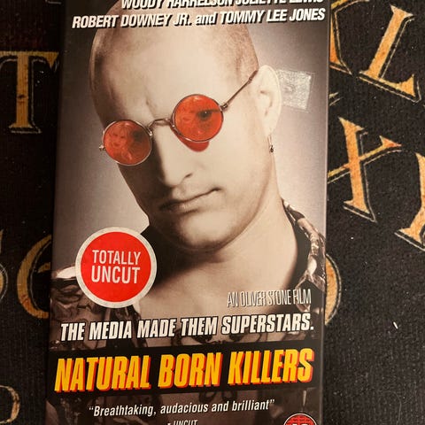 Natural Born Killers DVD med skuespillere Woody Harrelson, Juliette Lewis, Robert Downey Jr. og Tommy Lee Jones. Filmformat DVD.