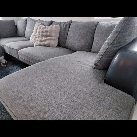Hel og fin sofa selges grunnet ommøblering av stue. Avtagbare trekk. Valgfri plassering av nakkestøtter. Justerbare føtter. Kan deles i 3 deler. Lengde 290cm, Dybde (uten puff) 150cm, sittehøyde 45cm. Rygghøyde med nakkestøtte 98cm. Behjelpelig med å løfte den ut