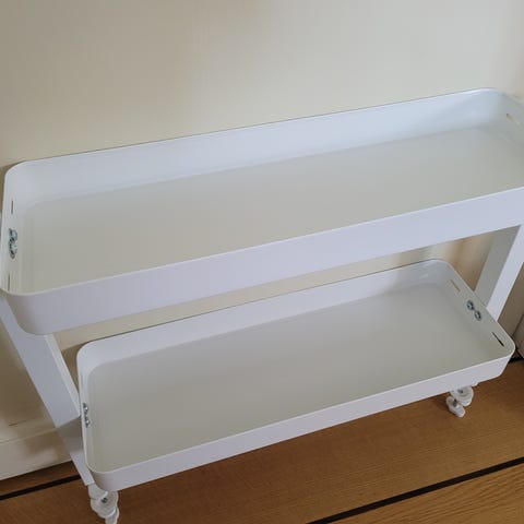 Oppdaga at den ikkje kan skruast fast på tiltenkt stad. Har ei hylle som er i uopna pakke og ein pakke som er opna og begynt montert.