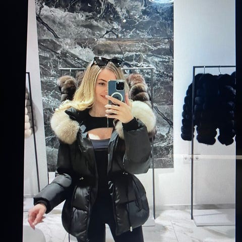Greenland Pels Annet yttertøy i pels, flerfarget, størrelse M for dame. Jakken har dobbelspent knappelukking og klassisk krage. Laget i pelsmateriale og designet for utendørs bruk.