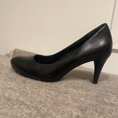 ECCO hæler for dame i størrelse 37. Skoene er svarte og laget i skinnmateriale. Passer til formelle anledninger eller til bruk på jobb.