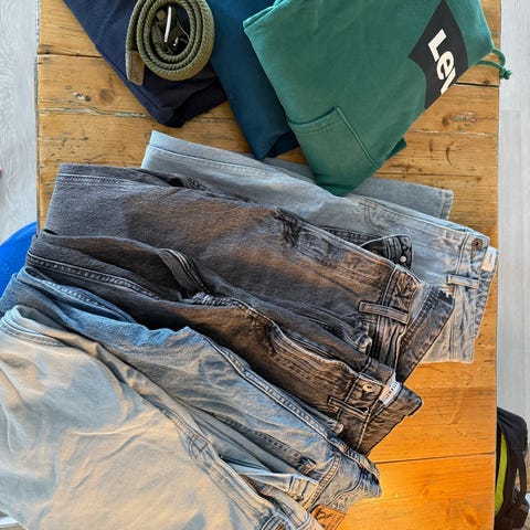 En Vertikal overtrekksbukse str 176, satt på strikk selv og de bør kanskje byttet.