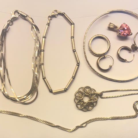 Her er den enke øredobber og ødelagte smykker. Et par medaljer som er i god stand.