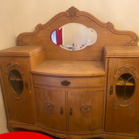 Gammel, flott skjenk gis bort. Trenger litt reparasjon, se bilder.