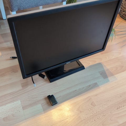 Dell skjerm med justerbar fot. Skjermen har en størrelse på 33x56cm og er i fargen svart/sølv. Egnet for kontor- og hjemmearbeid.