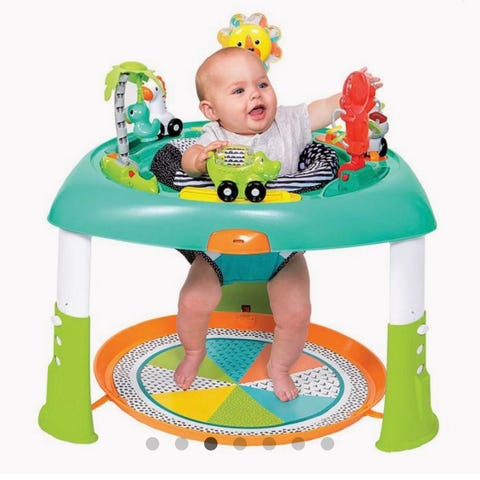 Infantino 3 i 1 aktivetsstol holder barnet i aktivitet ved bordet. Stimulerende lekeputer oppmuntrer til sanseutvikling og hjelper til med å bygge finmotorikk, og er avtakbare for gulvlek eller moro på farten. Stolen har 6 morsomme aktiviteter, og inkluderer et lysende piano med 20 melodier og lyder. Når barnet er klar for en matbit, skyver du lekepodene fra hverandre for å avsløre et måltidsbrekk med koppholder. Partiske sikkerhetskopper gjør at setet lett kan festes til en kjøkkenstol, og det myke skumsetet er behagelig for barnet og lett og tørke av.