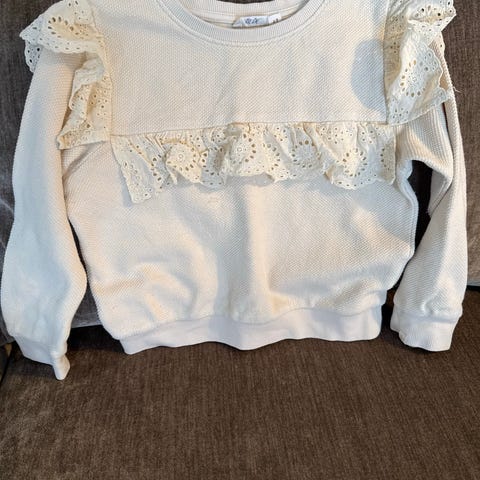 H&M genser i størrelse 128 for jente. Genseren er rosa og har dekorative detaljer på skuldrene.
