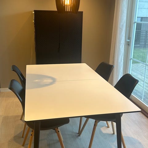 Bord og stoler er fra møbelringen. Fortsatt mulig å kjøpe ekstra klaff derfra.