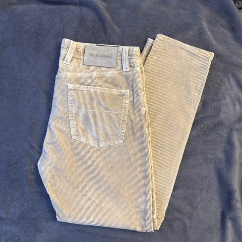 Eksklusive jeans fra Richard J. Brown, modell Piero. Lett og komfortabel italiensk premium-denim fra Island Paradise / Summer Denim-linjen. Perfekt passform, høy kvalitet og elegante detaljer. Pent brukt og i meget god stand.