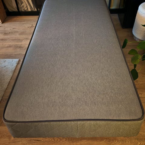Eldre Svaneseng, men fortsatt god, gis bort mot henting. Sengen kommer uten overmadrass. Den står på en hvit sokkel og det er to ulike mykheter i madrassene som kan snues.
