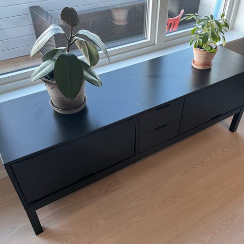Selger pent brukt TV benk pga oppussing. Litt falmet/solbleket noen steder, se bildene. Ikea har god beskrivelse på hvordan man eventuelt kan olje/beise benken igjen om man vil freshe den opp igjen.