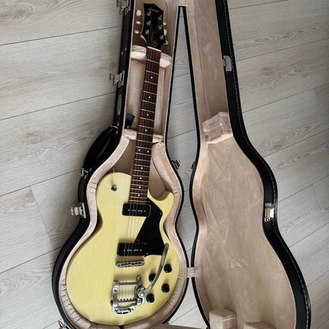 Gitaren er i meget god stand. Kun lett spilleslitasje på toppen. Generelt svært pen, og beskyttelsesplasten sitter fortsatt på bakplatene. Det finnes tre små, smale merker/riper i nærheten av jackinngangen. Funksjonelt og kosmetisk veldig god stand.