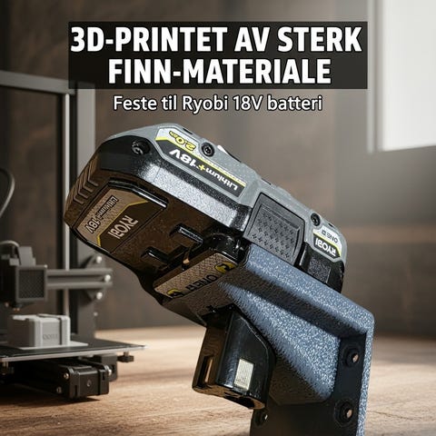 Utformingen er nøyaktig tilpasset Ryobi 18V-batterier og testet med ekte batterier for korrekt passform, stabilitet og enkel inn- og uttak.