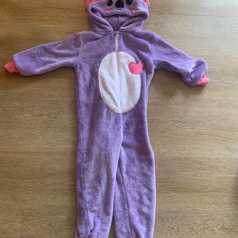 Veldig populær heldress som har vært veldig veldig populær blant egne barn og besøkende barn. Overraskende slitesterk. Om det er krokodille eller dinosaur har jeg forlengst slutta å diskutere med barna om. Det er akkurat det barnet ønsker at det skal være. Men innbyr til rollelek og teater. Kan også brukes på karneval og halloween. God og varm som kosedress også. Kan brukes fra str 92 til ca 110, men da litt trang i skrittet.
