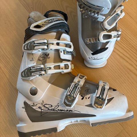 Salomon alpinstøvel i grønn farge. Støvlene har fire spenner for justering og en solid konstruksjon tilpasset alpint bruk.