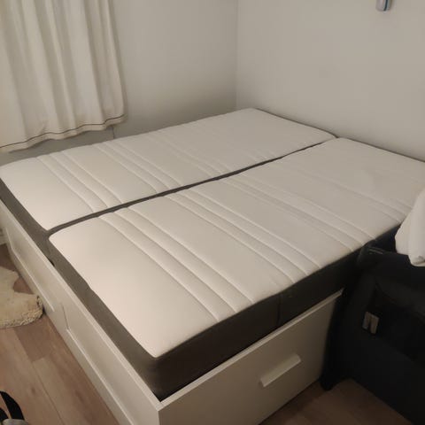 IKEA seng med ramme i lyst tre. Sengen har en enkel og moderne design med rett hodegavl. Passer til standard madrassstørrelse. Materialet er lyst tre, som gir et naturlig utseende. Egnet for soverom og kan kombineres med ulike madrasser og sengetøy.