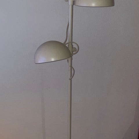 Lyseblå/gråhvit hengelampe med godt lys. Tror den er fra IKEA, men ikke helt sikker da jeg ikke har kjøpt den selv.