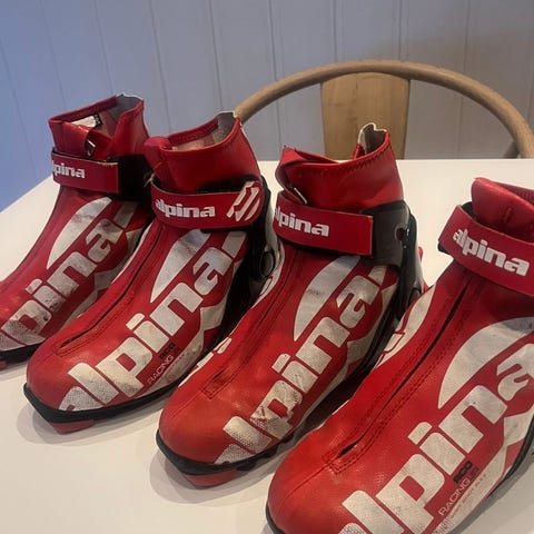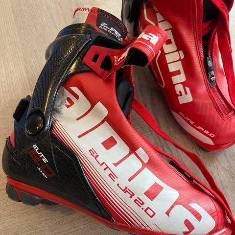 Alpina JR Pro JR skisko i fargene rød og svart. Skiskoen har borrelås- og glidelåslukking for god passform og støtte. Designet for juniorbruk med solide pigger under sålen for godt feste på snø og is. Størrelse 37.