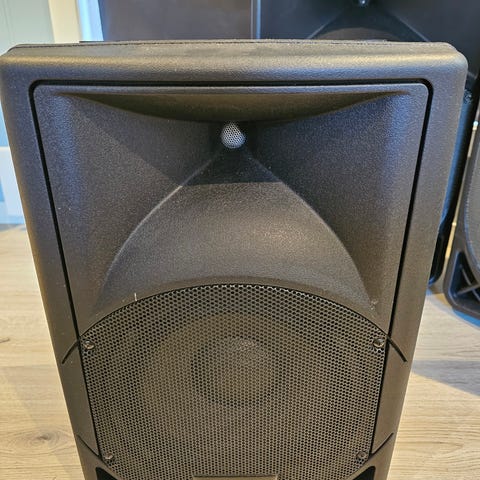 Yamaha Stagepas 600i bærbart PA-system med integrert mikser. Systemet inkluderer to høyttalere og en mikser med flere innganger for mikrofoner og instrumenter. Designet for enkel transport og oppsett, egnet for ulike lydapplikasjoner som konserter og presentasjoner. Ny pris 14000kr