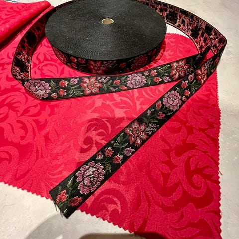 Rødt satengbånd med en bredde på 10 mm. Båndet er laget av satengmateriale og kan brukes til dekorasjon, gaveinnpakning eller håndverksprosjekter.