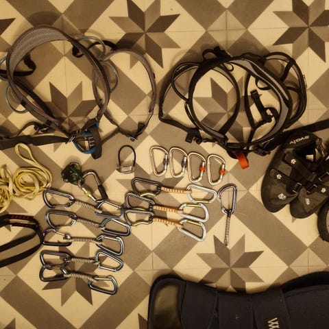 Katana klatresko med borrelås i svart og grå farge. Skoene har gummisåle med godt grep, egnet for klatring. Designet for å gi støtte og presisjon under klatreaktiviteter.