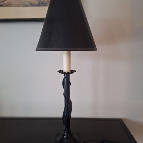 Bordlampe eik 53 cm høy med denne skjermen. Skjerm følger med.