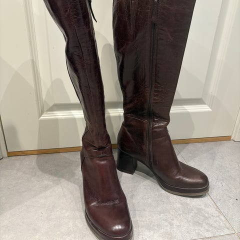 Nydelige støvletter i skinn. Skinn og stretchmateriale i legg. Str 42. Ikke store i str. Helt nye, kun prøvd på. Nypris kr 2100,-.