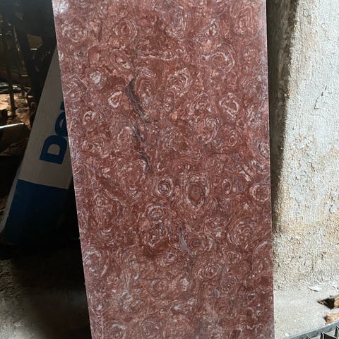 Selger en stor og tung bordplate i ekte marmor med spektakulert mønster. Dette er en solid steinplate med mye karakter og naturlige tegninger – perfekt til bord, benk, interiørprosjekt, utemøbel eller design.