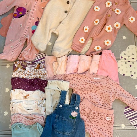 den lyserosa/hvit (kan vendes som man ønsker) er ca 6-8 mnd.