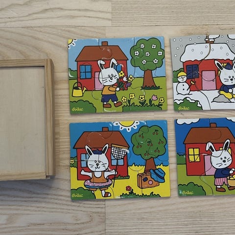 L128. TreBok Kjøretøy/fly/båt som kan henge/borrelås – 3 dobbelt sider. Petite collage. Litt slitasje. 40kr