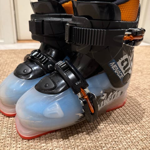 Dalbello barn skistøvler i størrelse 28 (17.5) med hvit og blå farge. Støvlene har justerbar spenne og polstret innside for komfort. Lite brukt.