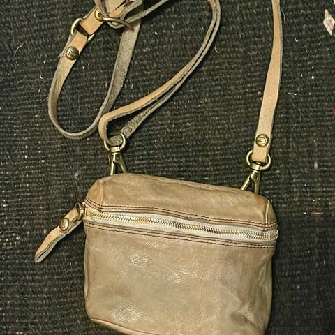 Flott Campomaggi veske med diverse lommer. Ekstra del til rem for å forlenge. Flettet parti i forkant. Sender ikke.