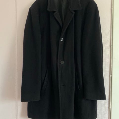 Gråbrun vevd kåpe i str XL til herre, men kan fint brukes av hvem som helst. OBS! Selges billig fordi den har noen mangler (avbildet på de tre siste bildene): mangler en halv knapp og noen hull (sikkert svimerker). Feilene synes ikke nevneverdig godt pga stoffets mønster, men kan være fornuftig å sy på en ny knapp.