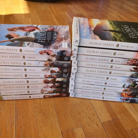 Selger bøker i fra serien Floras hjerte, skrevet av Mali Ludvigsen Nr 1-21.
