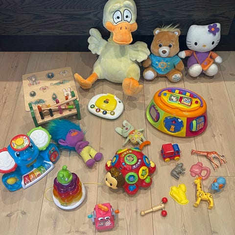 Mange fine leker til barn og baby. Godt brukt, mange hele, noen med skader/mangler men mye leseglede igjen. Selgeren alt samlet og må hentes.