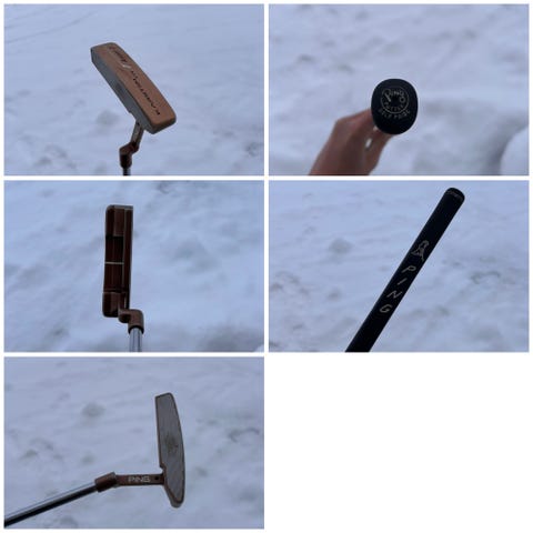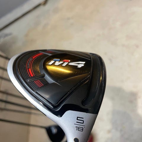 Golfsett med ulike køller inkludert driver, jernkøller og putter. Fint for nybegynnere