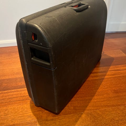 Trillekoffert selges da deb ikke er i bruk. Fikk den i gave for 15 år siden og brukt 3 ganger siden da. Bruker kun bag. Oppbevart tørt og luftig. Alt fungerer som det skal. Nøkkel mangler. Kodelås virker.