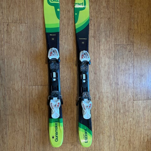 Nordica ski i blå farge med monterte bindinger. Skiene er egnet for bruk på snø og vinterforhold.