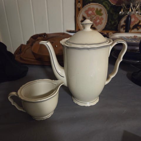 Sukkerskål uten lokk. Føresett med asjett. Gratis levering langs ruten fra Feiring til Lillestrøm.