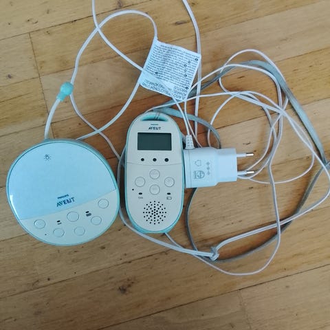 I god stand, kan brukes både med batteri og ledning. Kan snakke begge veier. Nattlys med måne. Kan også spille sanger, aldri brukt den funksjonen.