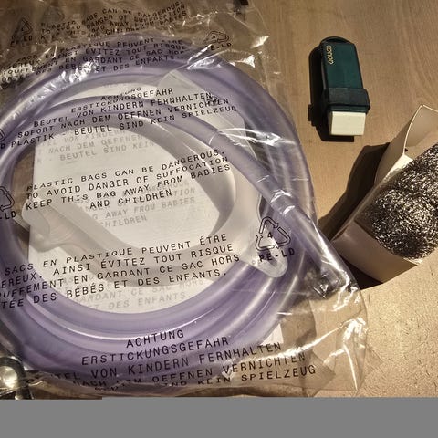 SEH avløpsslange med integrert vannlås, lengde 90 cm, farge hvit. Slangen er utstyrt med standard koblinger for enkel installasjon uten behov for verktøy. Egnet for tilkobling til vaskemaskin eller oppvaskmaskin for avløpsvann.