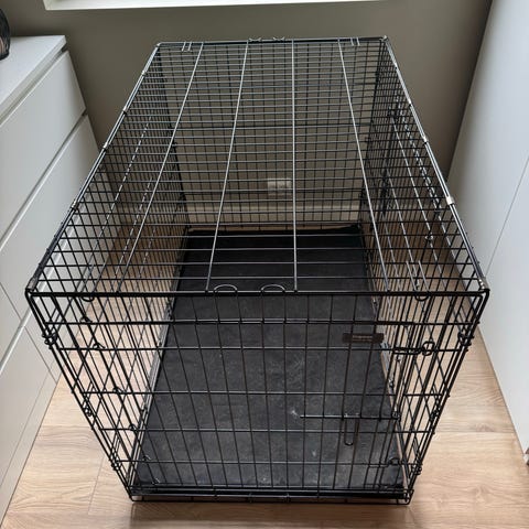 Sammenleggbart hundebur i stål som er slitesterkt og lettmontert.