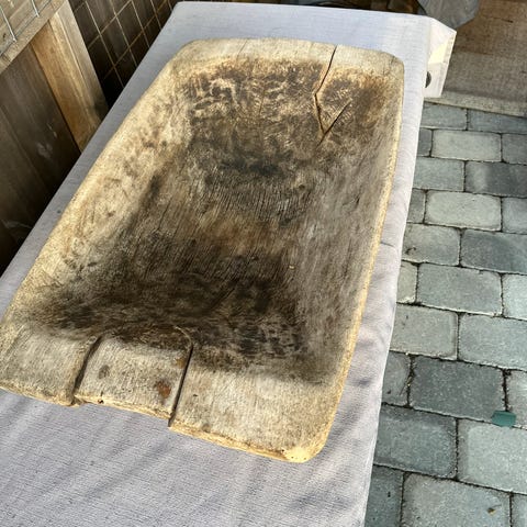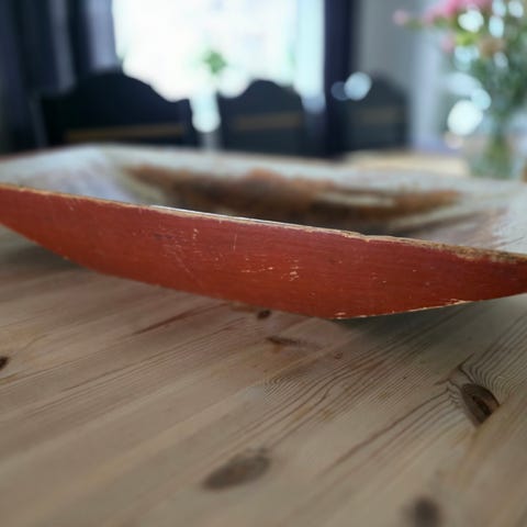Et flott trau med rester av orginal maling.