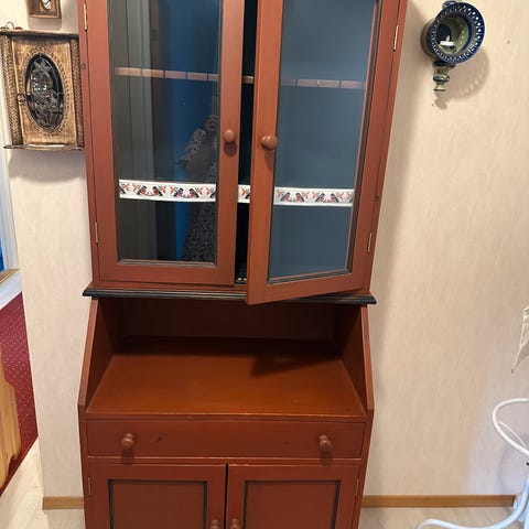 Meget pen reol med glasshyller og lys i skapet. Dør som kan åpnes til barskap som også kan belyses. Bør sees!