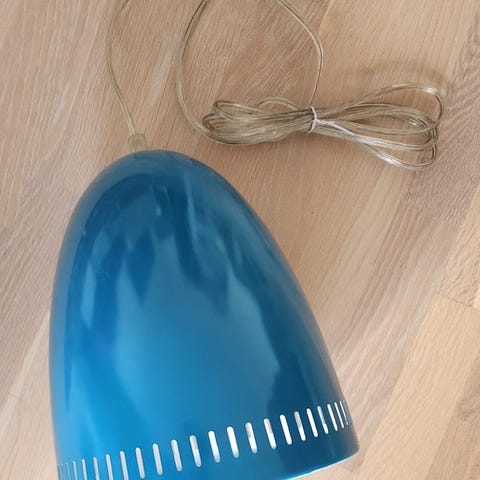 Lampen har en kjegleformet skjerm og er designet for å henges i taket. Den har en åpen lyskilde med en klar lyspære. Lampen er i fargen aluminium.